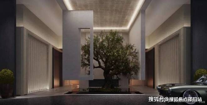 约13m挑空的下沉庭院,以约4.5m高玻璃幕墙引景入地,形成“主入口-艺术环廊-视觉水景”的空间序列。地下一层光庭为车库引入自然光线,实现功能与美学的统一。