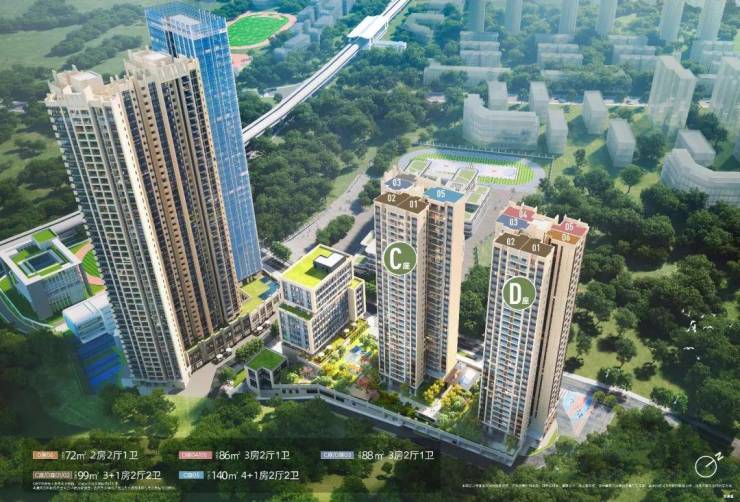 一期占地面积9517㎡,建筑面积86972㎡,规划由2栋超高层住宅和1栋公寓及商办楼组成;