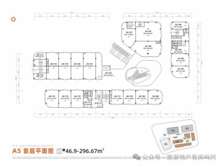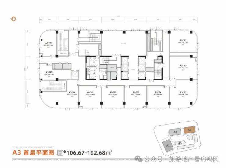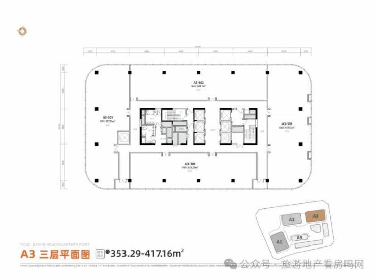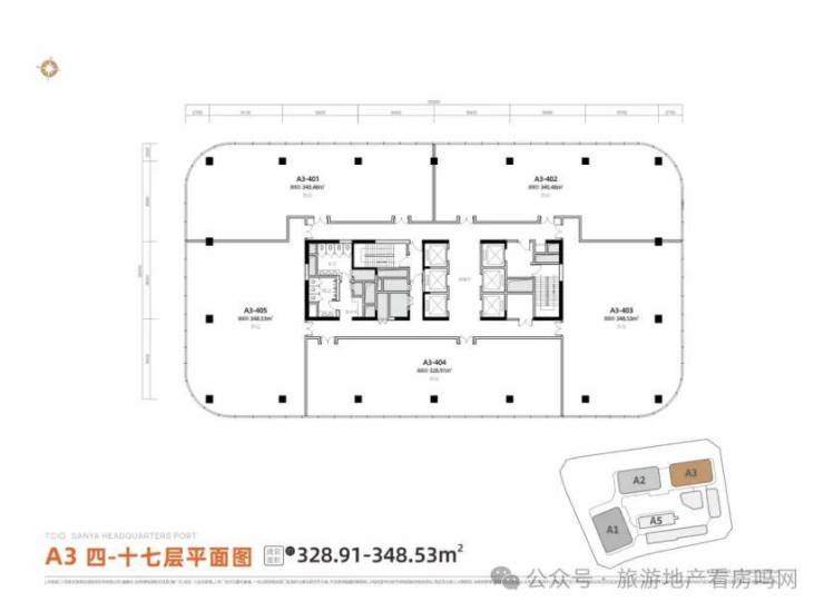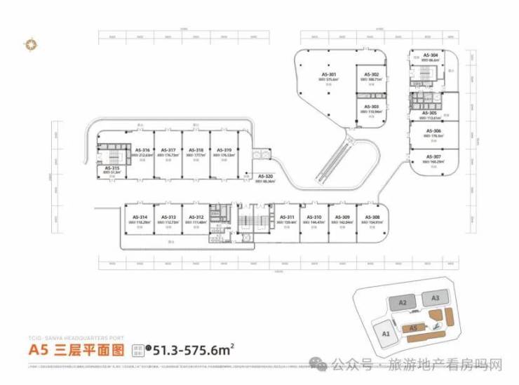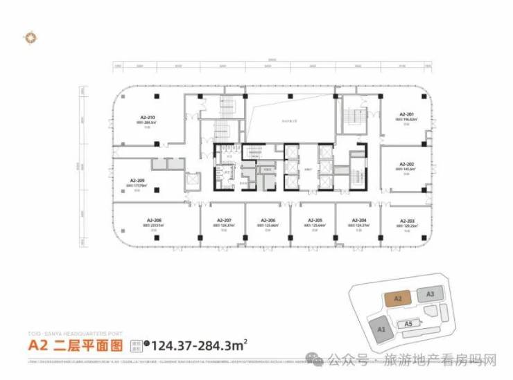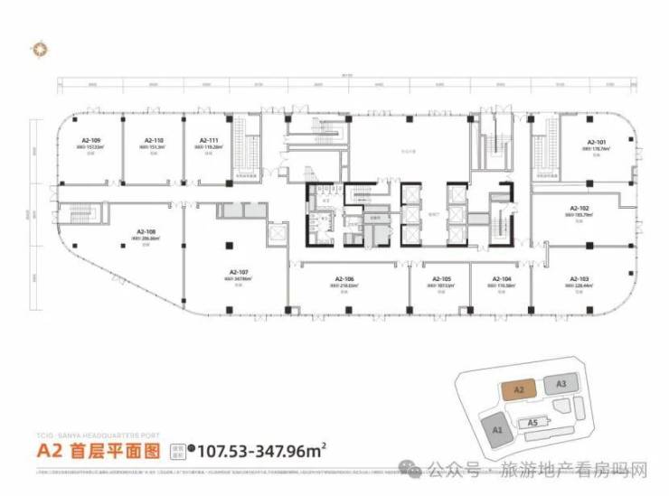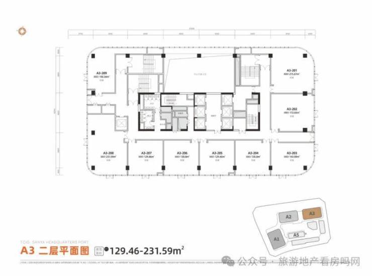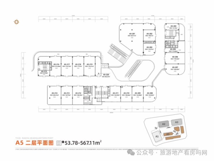 旅文·三亚总部港项目北区写字楼产品建面约337-553㎡,北区商铺户型建面约57-567㎡。整体以LOW-E全玻璃幕墙,实现大尺度的通透采光性,270°眺望城市车水马龙、山林葱翠盛景;并领创约11.4米全挑空大堂、约4.3-5.2米阔尺层高,营造高端商务体验。