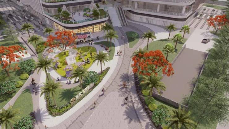 旅文·三亚总部港聚焦塔尖目光,以在地文化底蕴为基调,精筑立体质感外立面,举目光影交织,视觉盛宴;低头绿植、花卉、水系、艺术小品等景观互动成趣,以四季繁盛的园林艺术,让于此工作的商务精英灵感无限延伸,标定办公新风尚。