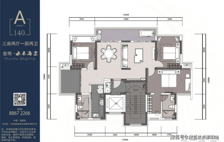 A户型140㎡三房二厅二卫