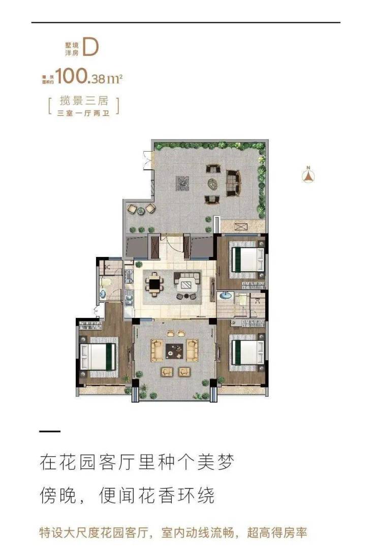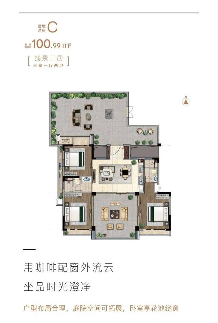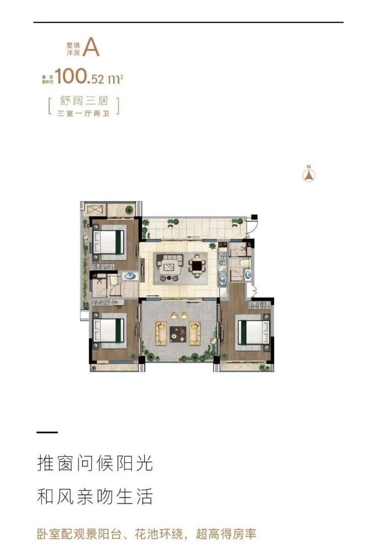 墅境洋房A户型 三房一厅两卫 建筑面积100.52㎡