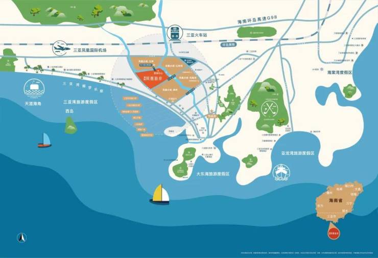 ✈ 交通配套🚄 北连河东路、凤凰路,西南紧邻解放路,驾车约8分钟即达三亚高铁站(约3公里),驾车约20分钟即达三亚凤凰国际机场(11公里),驾车约15分钟到达环岛高速G98火车站互通(5.9公里),距离有轨电车水城路车站约1.3公里;