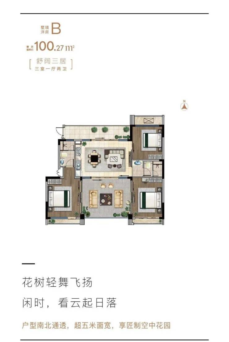 墅境洋房B户型 三房一厅两卫 建筑面积100.27㎡