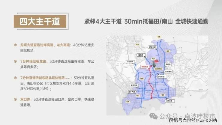 龙观大道直连沈海高速、龙大高速:40分钟达宝安国际机场;