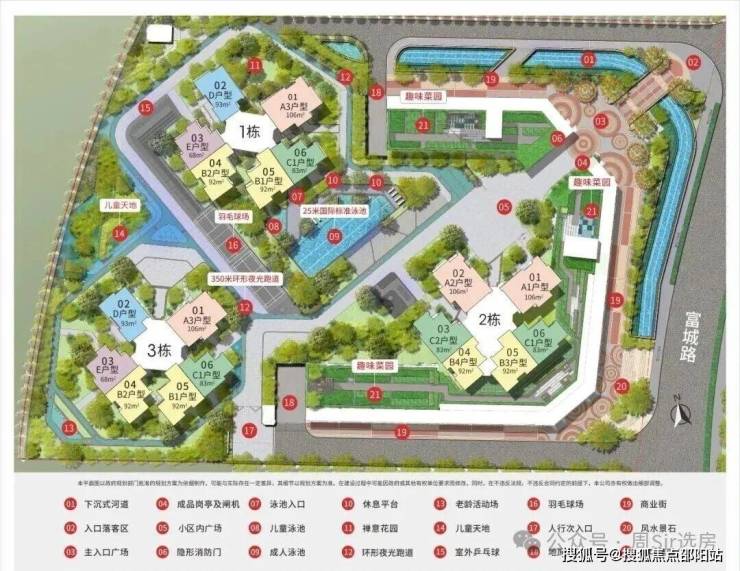 社区全龄段泛会所、国际标准泳池、夜光跑道、亲子菜园、童趣沙滩等