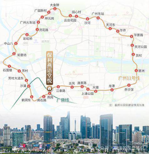 约50m燕岗站,广佛线、11号大环线(土建工程已完成98%,将于年内通车)双地铁上盖,4站达上涌、8站达琶洲,轻松链接全城。