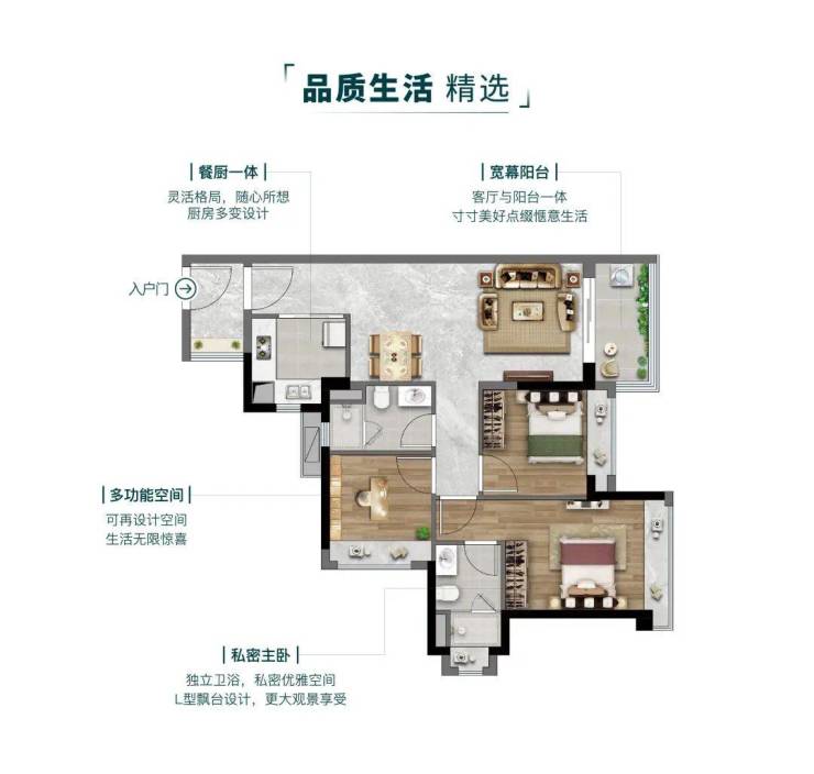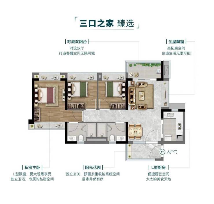 超百米观景视野,舒享静谧居住体验,新式蝶式布局,户户入户花园设计,对流通风无遮挡,尽享360°环幕视野