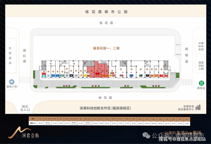 福保土地资源稀缺,园区内商业配套限额,片区商业稀缺,商住比低,河套壹街是片区唯一的地铁口品牌餐饮街区。