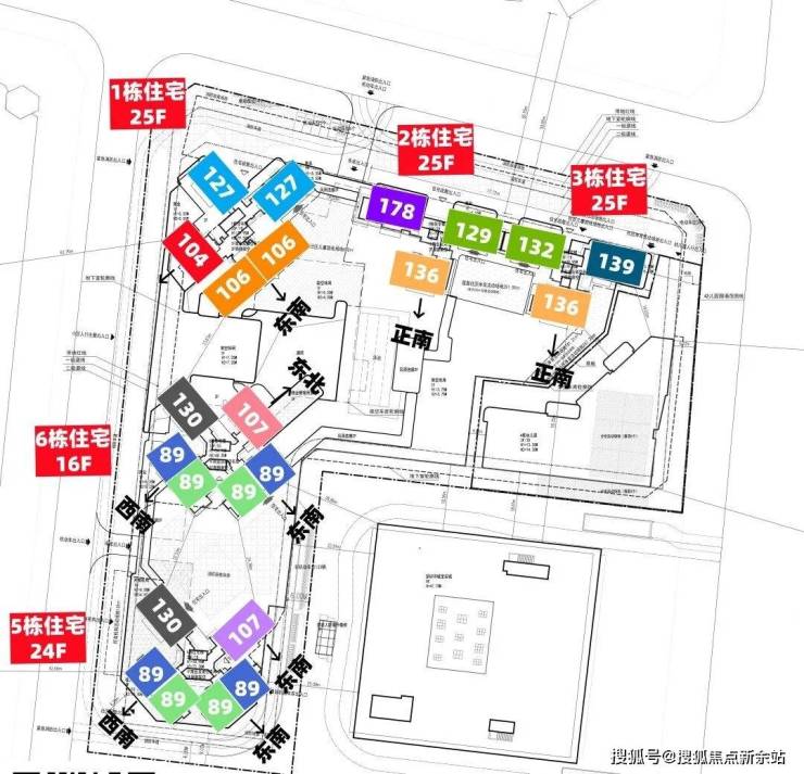 总规划462户,全部都是商品房,2/3栋是2梯3户,1栋2梯5户,5/6栋2梯6户设计,规划停车位530个,车位占比约1:1.15。