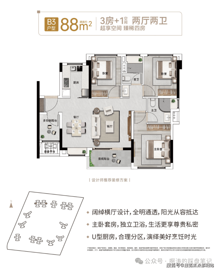 【88㎡:3房+1(空间)2厅2卫】(横厅)
