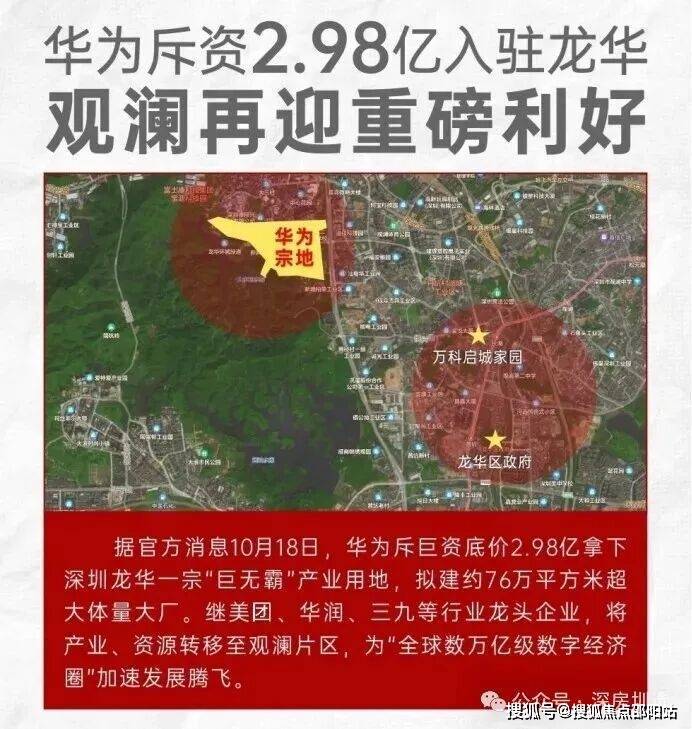 华为进驻利好,76万㎡“超级大厂”助力观澜腾飞。三城两镇一商圈中,观澜占据其三,“鹭湖科技文化城、九龙山智能科技城、观澜文化艺术小镇”三大片区重点发展人工智能、5G、创意文化、生物医药,引领龙华价值跃迁。资料来源:南方日报、深圳房地产信息网