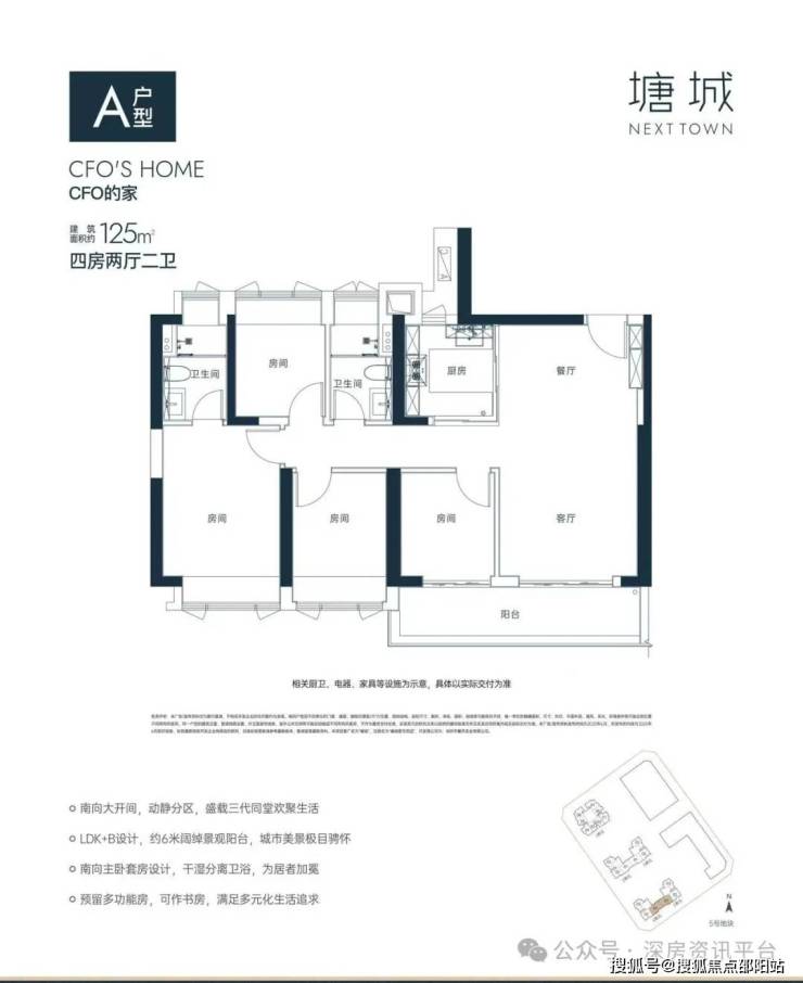 125㎡的4房2厅2卫,设计的是竖厅格局,LDK+B一体化,四开间朝南,主卧套房设计,U型厨房,6米长的大阳台,东南朝向。