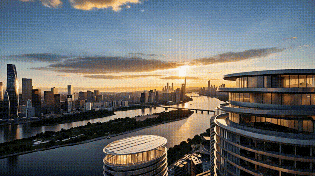 在当下的珠江之畔,鹏瑞1号为建筑领域中自然与人工的交融,作出了全新且深刻的诠释。其设计灵感源自历经千年岁月的珠江水纹,在此基础上,精心打造出广州首座弧形立面建筑群。该建筑群宛如一组庄重而宏大的公共雕塑群落,傲然屹立于珠江之滨,以独特的建筑语言,诉说着自然元素与人工巧思的和谐共鸣,展现出在建筑创作中对自然与人工平衡关系的深入探索与卓越实践 。