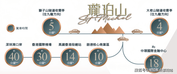 同时项目邻近两大主要隧道,由项目驾车前往狮子山隧 道收费亭( 往九龙方向) 及大老山隧道收费亭( 往九龙方向) 分别只需约5分钟的及约4分钟%。