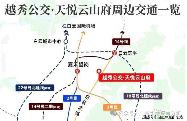 项目距离地铁14号线白云东平站约1.7公里,还有在建的地铁18号线北延段,3号线白云大道北站约2.1公里。