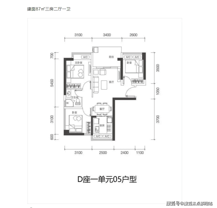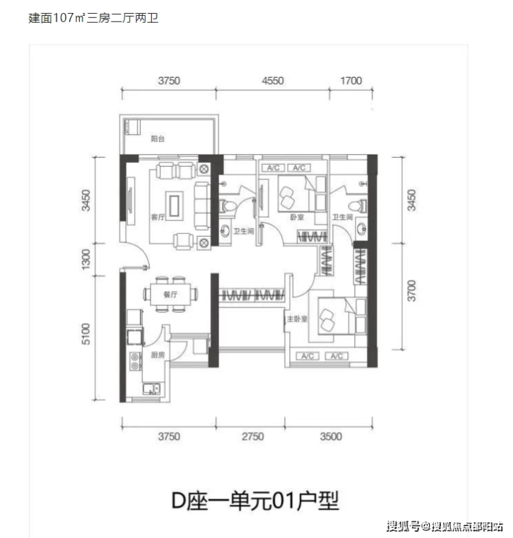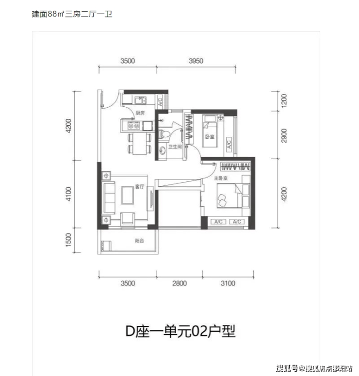 :75㎡两房总价556万起,93㎡三房两卫实得约72㎡(得房率77.4%)