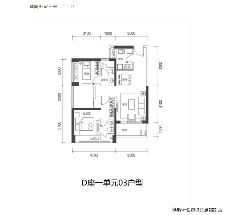 锁定93㎡三房两卫,主卧套间+6.7米阳台,但需警惕总价超700万后的流动性风险