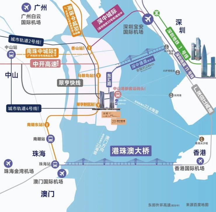 中开高速(建设中):快速通达中山市区,联通马鞍岛与中山主城区,延长至江门。