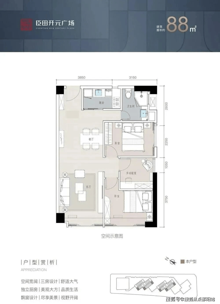 🏙 88㎡三房,2.7万/㎡起,总价约238万起