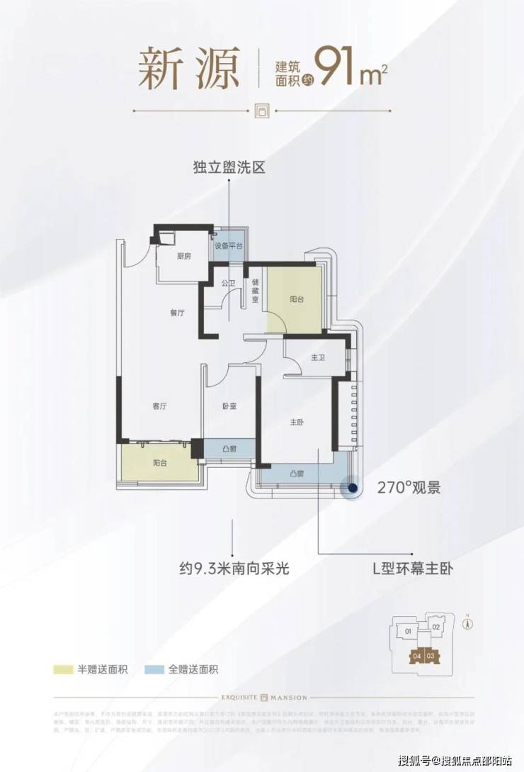 91㎡户型得房率约89%,113㎡户型高达94%,通过设备平台、飘窗等空间优化,实用面积远超常规新盘。