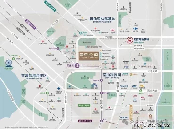 同乐公馆,位于深圳南山区南头街道同乐社区中山园路229号,地处南山区与宝安区交界处,毗邻中山园路与南坪快速交汇处北侧。项目占据"南山科创芯"核心位置,是深圳湾-科技园-西丽科创中轴的关键节点,直线距离仅3公里范围内覆盖科技园、前海自贸区及留仙洞总部基地三大产业核心区。西丽高铁新城(在建中,预计2028年投入使用)的规划进一步提升了区位价值,该枢纽将形成"4高铁+2城际+4地铁"的超级换乘网络,规模超过深圳北站,成为全国最大的轨道交通换乘站之一。