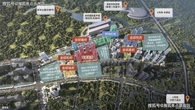 满京华·金硕项目直面占地约208万㎡的科学公园(在建中),近享深圳国际美术馆(在建中)、深圳科技馆新馆(在建中)、科学城体育中心(在建中)、光明文化艺术中心等市级文体配套;还坐拥狮山公园、约9.4万㎡的东周文化公园,约10万㎡的开明公园,约56万㎡的新城公园等丰富绿色生态资源。