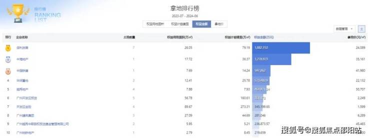 2023年下半年以来,广东保利积极把握土地市场结构性机会,通过招拍挂的方式在广州拿下7宗涉宅用地,拿地权益金额188.2亿元,高居拿地数量及拿地金额榜首。