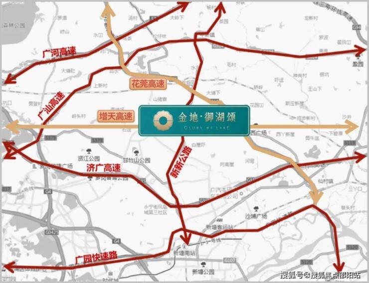 △ 项目周边6条高快速路链接湾区:济广高速、增天高速(预计2025年开通)、花莞高速、广园快速、广惠高速、广深高速等