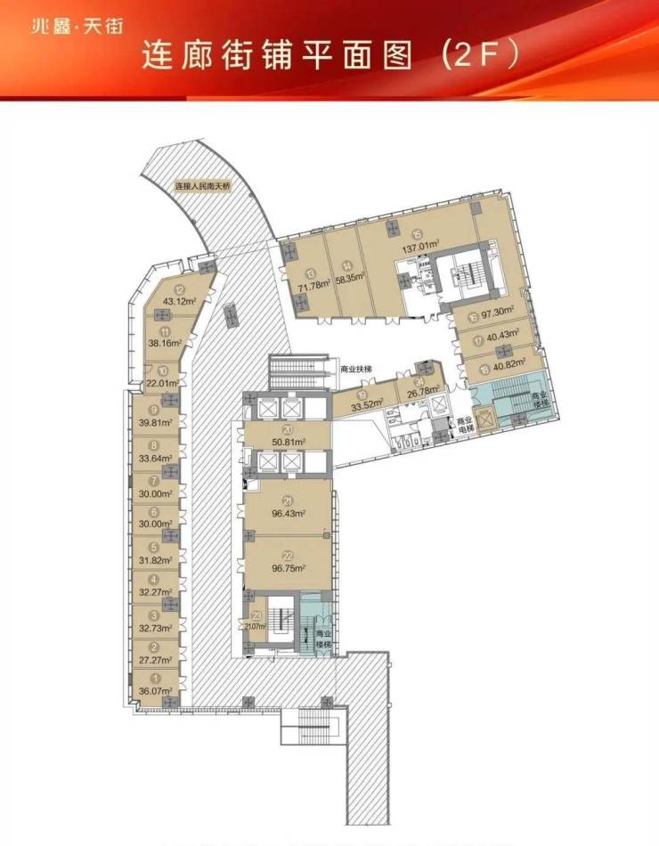 商铺面积段:约17-218㎡