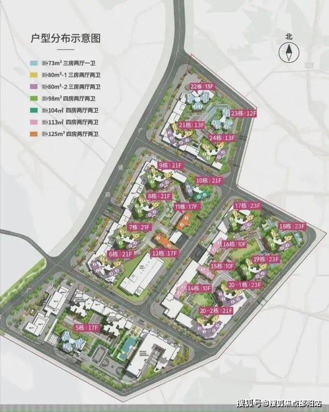 项目占地面积约7.4万㎡,规划建筑面积约21.5万㎡,其中,住宅约19万㎡,商业约1万㎡,项目总体容积率2.91。总户数1700户,其中保障性租赁住房767套,包括无偿移交政府的6折保租房257套,位于2栋、3栋,企业自持9折保租房510套。
