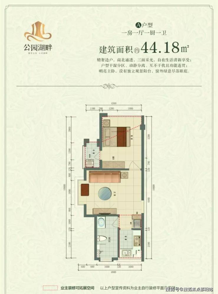 在售户型:44平米舒适一房一厅一卫