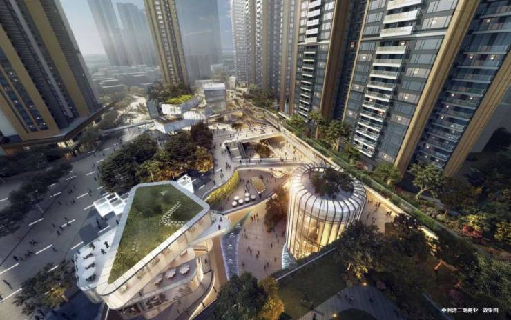 商业上,1公里内有BO SPACE、车公庙等超50-60万m²商业配套,项目旁边的京基KKONE早已成熟。更重要的是,中洲湾迎海也自带了16万平商业,与KK ONE联合形成约26万㎡的超级城央商业圈。