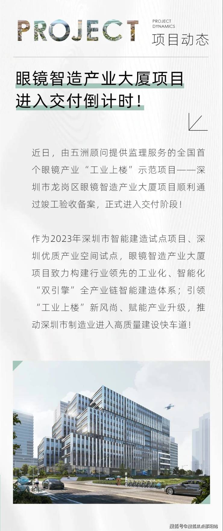 眼镜智造产业大厦项目,作为深圳高品质“工业上楼”项目的典范,充分展示智能制造与建筑工业化协同发展的和谐共生。项目位于深圳市园山街道保安社区志雅路与山水一路交汇处,占地面积 13395.51m2,总建筑面积约 6.9 万 m2。项目由 1 栋厂房、1 栋宿舍、周边商业及地下室组成,以优质产业空间为基础,创新研发“工业上楼”快速建造 PCRC 产品体系。通过因地制宜,深度融入“创新产品 + 智能建造”的新质生产力,全面实现全生命周期智能建造应用,构建行业领先的工业化、智能化“双引擎”的全产业链智能建造体系,为现代化高品质产业园区建设提供“先行先试”样板。