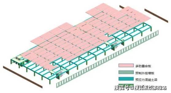 采用自主创新研发的“工业上楼 ”智能建造建筑产品 PCRC 体系。主体采用薄壁高强钢管混凝土柱+先张法预应力梁+普通钢筋砼叠合梁+多肋叠合楼板组成的新型建筑工业化结构。实现了100%工厂预制、100%现场装配,免模板、免支撑、免外架,现浇砼不占施工关键线路,可穿插施工效率高等优势。