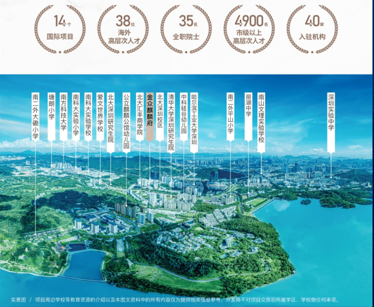 金众麒麟府,汇聚城市豪奢圈层人士,与高净值人群为邻,成就更大的视野格局和人生境界。作为深圳最高学历小区,麒麟府现已汇聚3位国家级院士,20名国家高层次人才、超70位博士学历者,全球top50海归、211、985等高校人才超100人,中国资本市场,清华、北大研究生等十余所塔尖学府环绕、近邻西丽高尔夫球场,择贵而居,鼎定名流圈子执掌湾区科创核心,定鼎城市未来价值高地。集智纳贤、创新不断。规划面积69.8平方公里的西丽湖国际科教城正显现“创新加速度”从2002年开始,深圳在其周边布局了大学城,清华、北大、南科大等高校,以及鹏城实验室等科研机构相继入驻。目前,这里已集聚35名全职院士、多所高校单位超8.6万名在校师生,入驻国家、省、市级创新载体超500家,日渐形成粤港澳大湾区发展的“知识引擎”