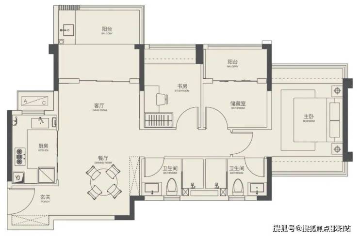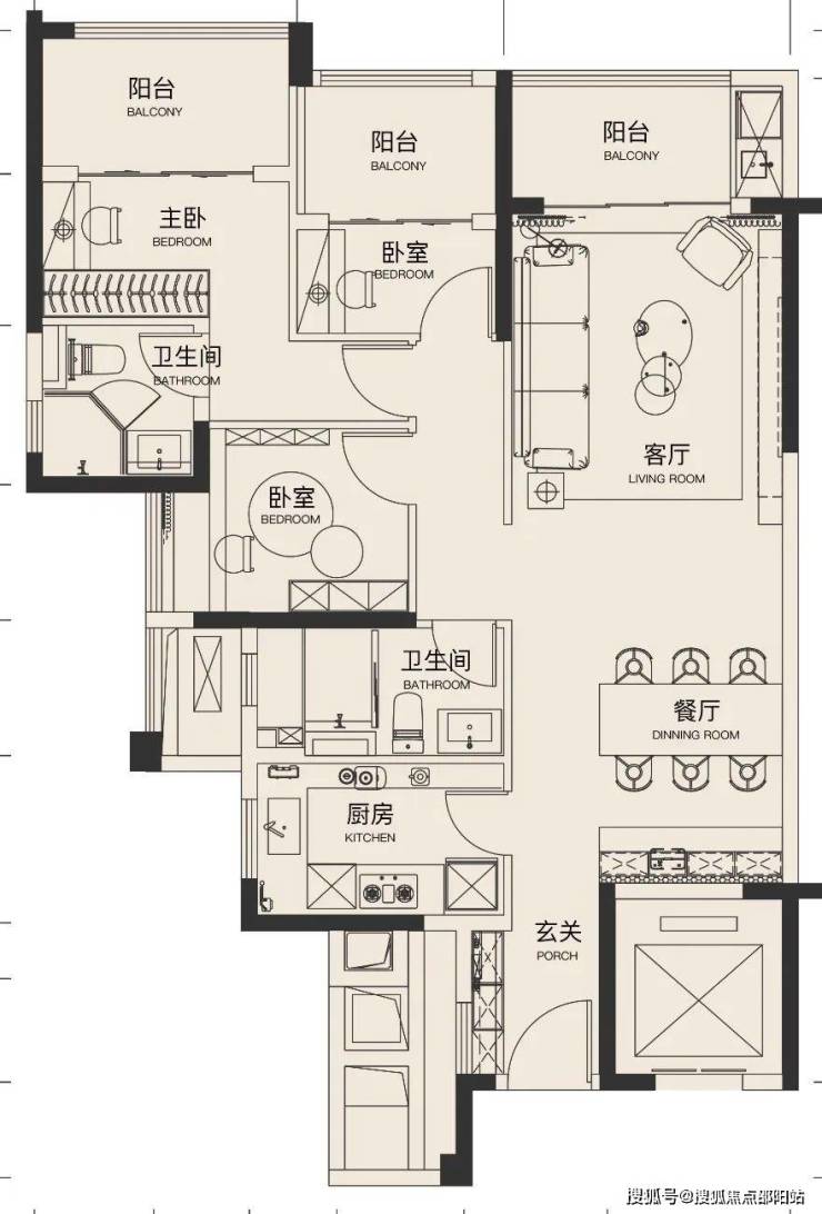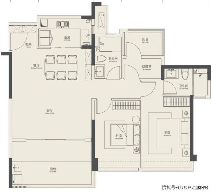 户型产品,86-112㎡,小面积大空间,极限延伸尺度,空间自由灵动,超越市面LDK概念,首创LDKG客餐厨阳台一体化空间。