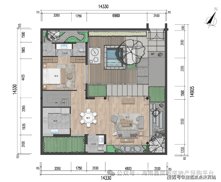【独栋小院:三室两厅四卫 建面约97㎡】
