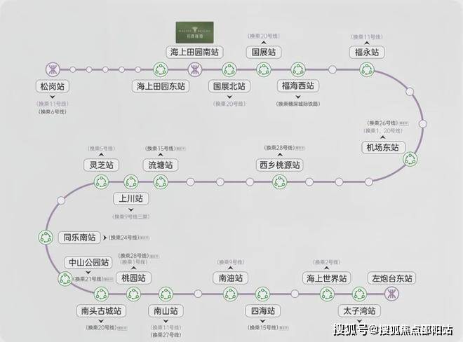 交通配套:项目出门就是12号地铁线“海上田园南站”,1站到国展北可换乘20号线,5站到福永可换乘11号地铁线,公路方面,距广深沿江高速入口仅500米,15分钟直达深圳湾;深中通道30分钟可至中山,1小时通达东莞滨海湾。此外,项目步行5分钟可达福永码头,乘船30分钟直达香港中环;距深圳宝安国际机场仅8公里,适合高频差旅人群。