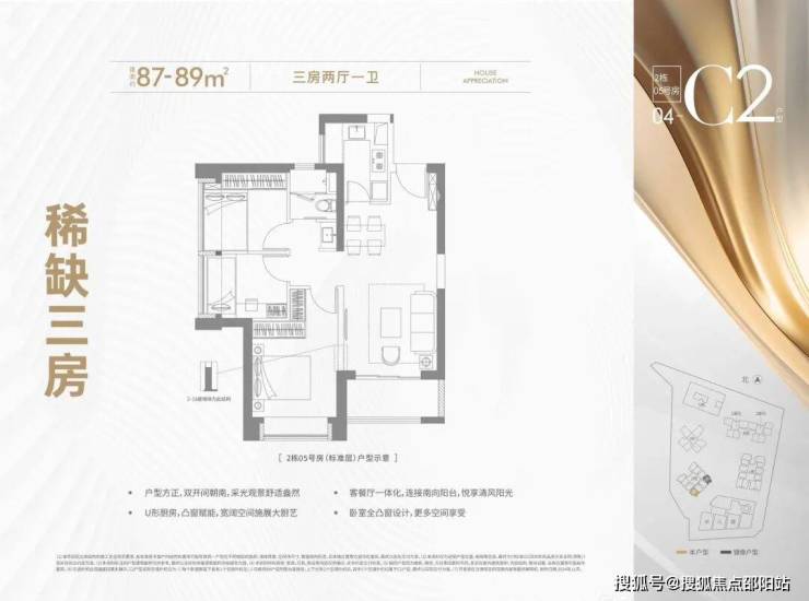 87-89㎡(三房一卫)稀缺精致3房户型,家庭生活一步到位!