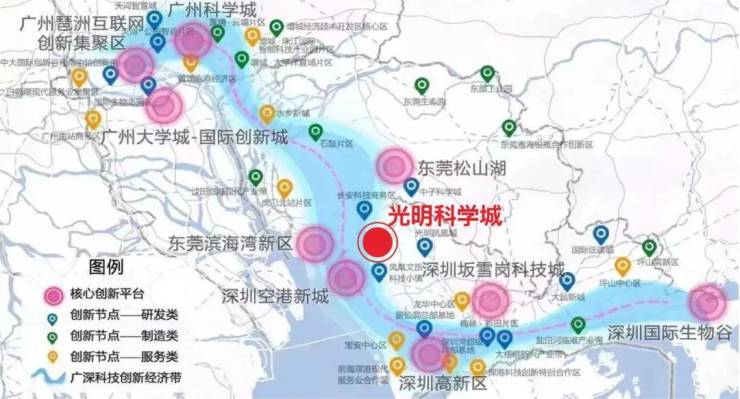 光明布局规划“一心两区”,“一心”即光明中心区,建设科学城的生活服务中心,集聚商业、居住、大型公共服务设施等顶级配套。