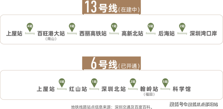 13号线据深圳交通局官网称将在2025年年底开通,该线路也是深圳3条快线之一,号称“深圳科技核心大动脉”,从南到北,串联深圳湾总部基地、后海中心、南山科技园、西丽高铁枢纽、留仙洞总部基地、白芒科研机构、宝安石岩科创城等多个重要片区。沿线华为、中国电子、腾讯、阿里等500强汇集,大批高新人才聚集,形成科创阵地,势必引领片区经济崛起。全程时速120公里,4站到南山百旺港大站,7站到南山西丽高铁站,8站到高新北。