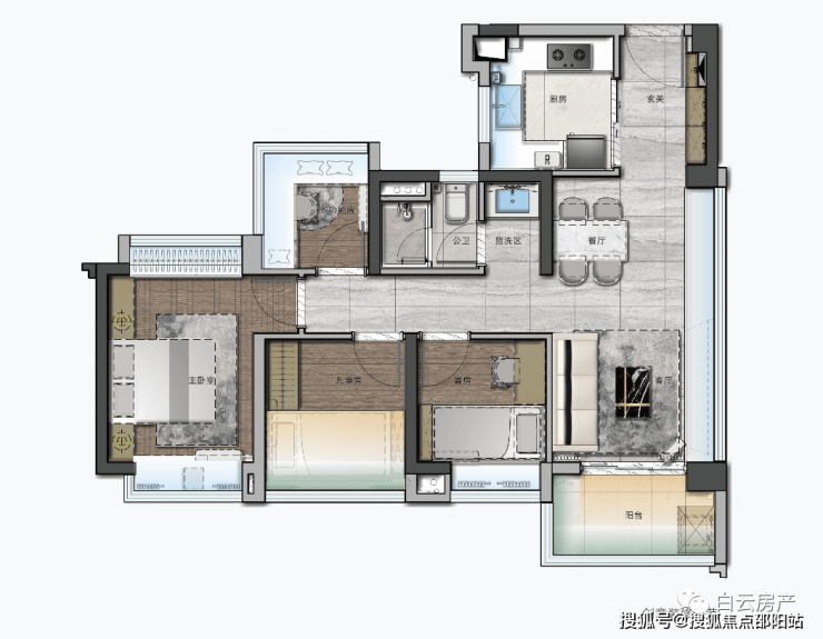 这个户型,有更富足的卧室面积,更加适合三胎进阶型家庭或者三代同堂。