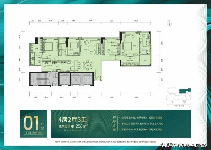 258 ㎡四房两厅三卫,
