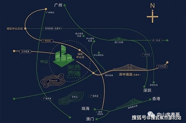 也位于粤港澳大湾区几何中心,对接博爱路、105 道、广澳高速、中江高速、中开高速、靠近广珠轻轨中山站等多项交通网路,快速到达港澳、广州、深圳、珠海等大湾区城市,实现 1 小时湾区经济圈。