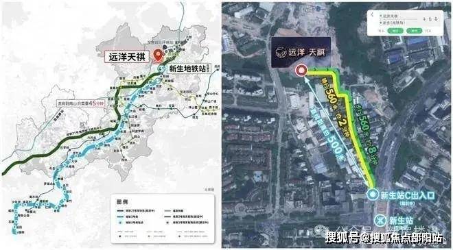 项目距离地铁3号线东延线(已通车)和21号快线(规划中)双轨交汇“新生站”(建设中)直线距离仅约500米(百度地图测距),是片区离地铁最近的在售项目,未来还有深惠城际前海保税区至坪地段,全长58公里,时速160公里/小时,以后从项目到南山、前海也很方便快捷。