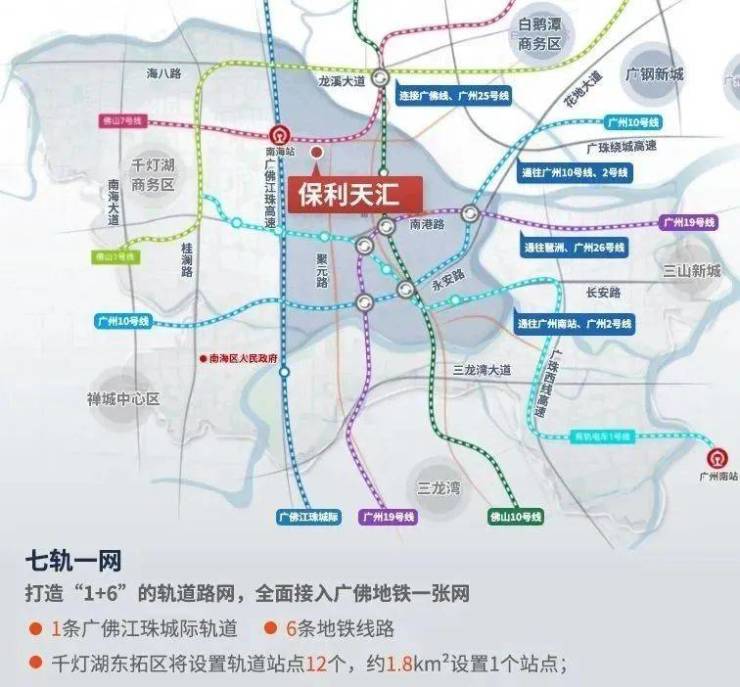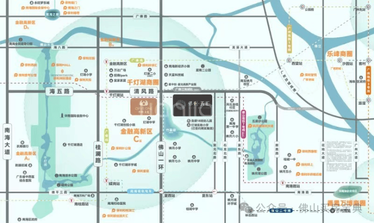 交通配套:保利天汇位于佛山一环东侧、海五路以南,地处金融高新区C区东拓板块,与广州荔湾直线距离仅2公里,距离保利天悦1.8公里,能够共享千灯湖板块交通、产业、公园等配套资源。除此以外,保利天汇还紧挨着南海最新规划的全新公园“竹基湖”公园。