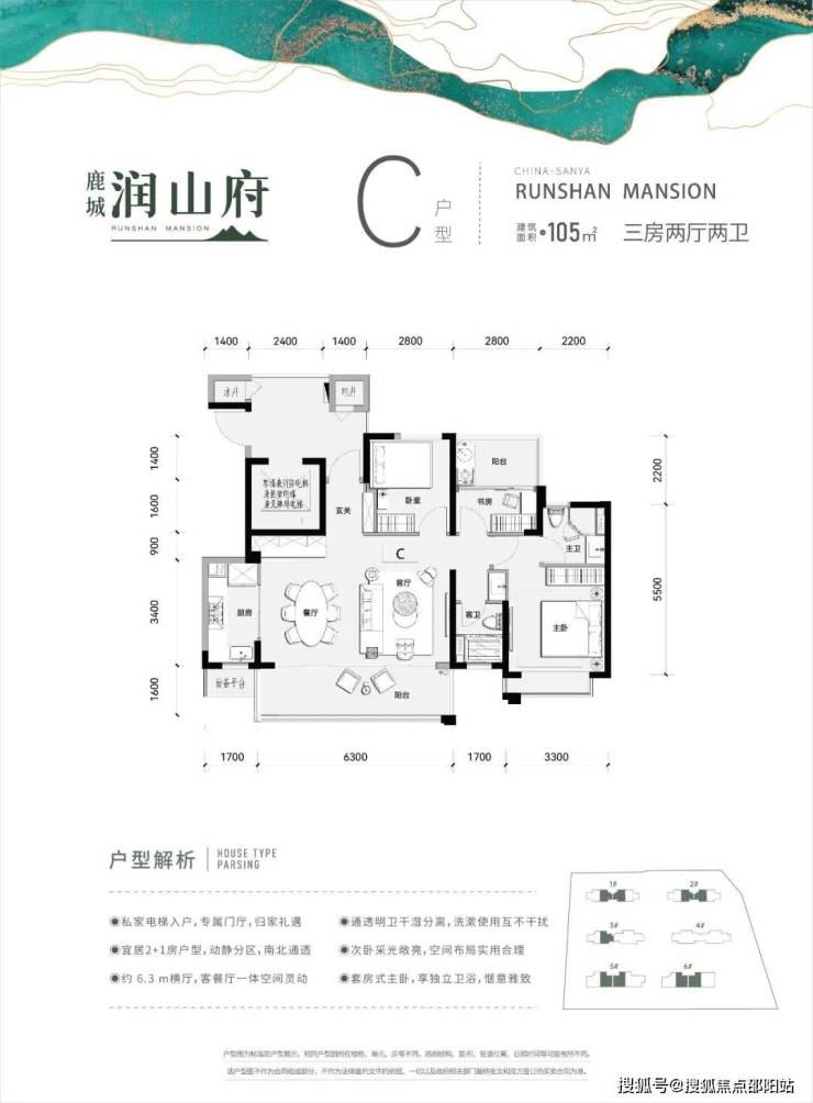 C户型 建筑面积:约105㎡房型:三房两厅两卫