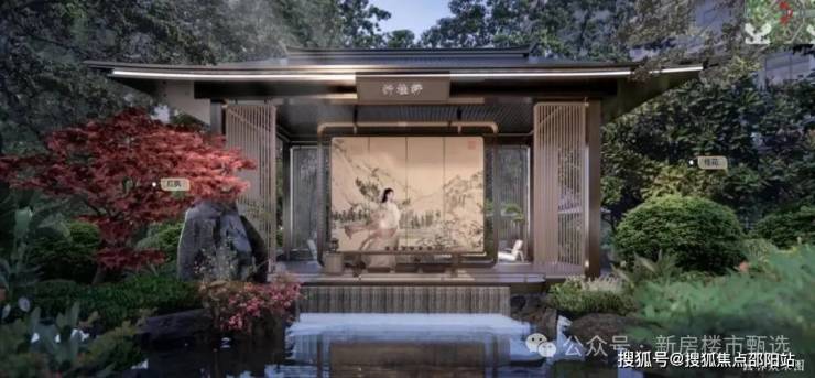 园林设计以岭南四大名园之一的清晖园为参考,打造了包含六大景观节点的园林体系,从入口水景到中心水院,再到儿童活动区,形成了完整的景观序列。