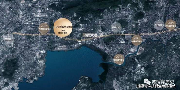 超级城市,其城市主轴的黄金分割点上均屹立着城市超级影响力的项目,如伦敦金丝雀码头、纽约中央公园,而深圳的发展主轴深南大道从罗湖中心到前海中心,绿景白石洲正处于黄金分割点之上。